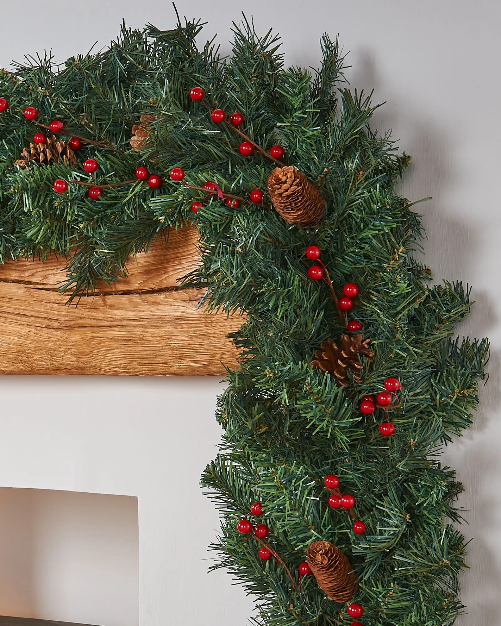 WeRChristmas Decorated Garlands^Extra Thick Mixed Pine Garland, Pinecones & Berries, 9 Ft