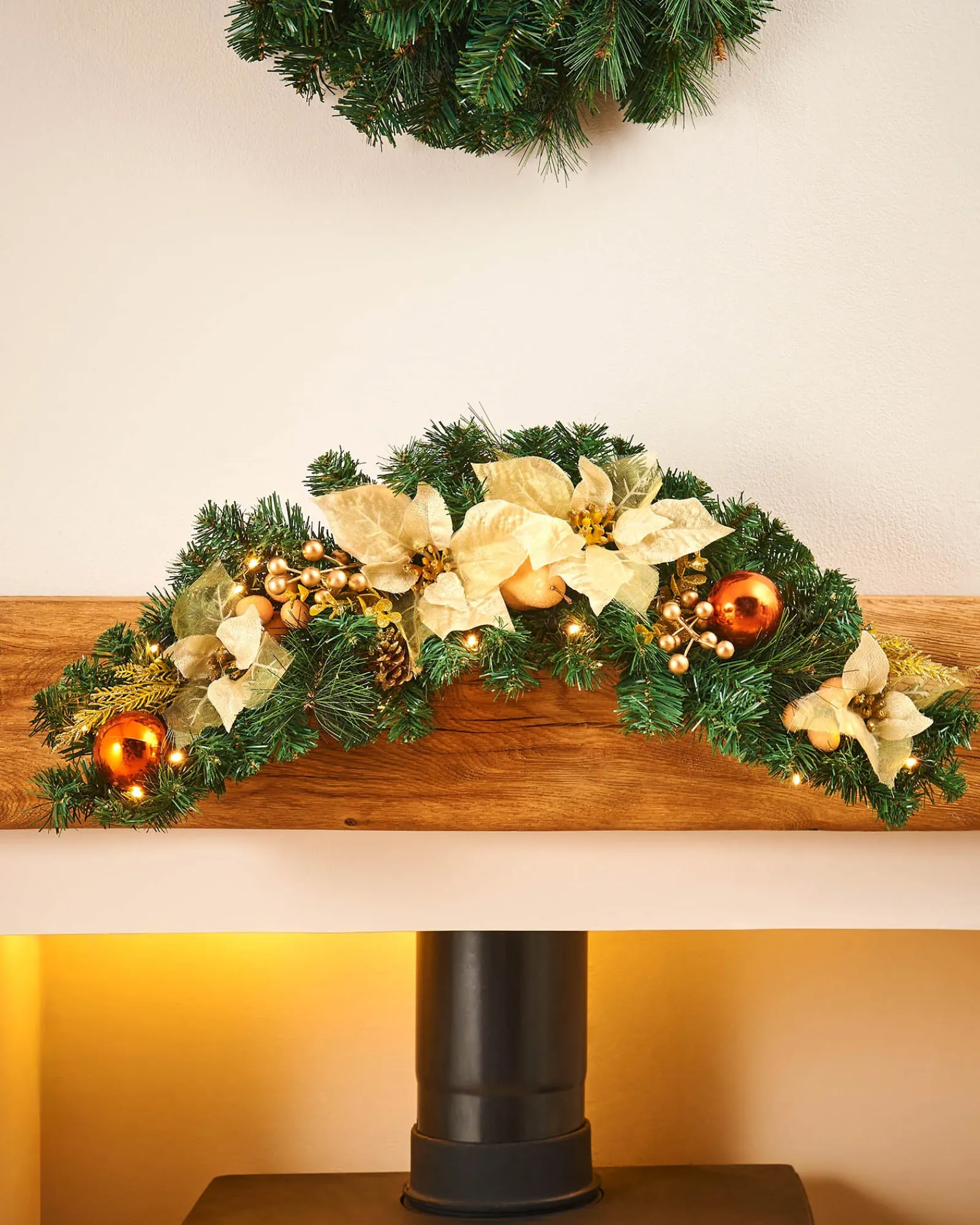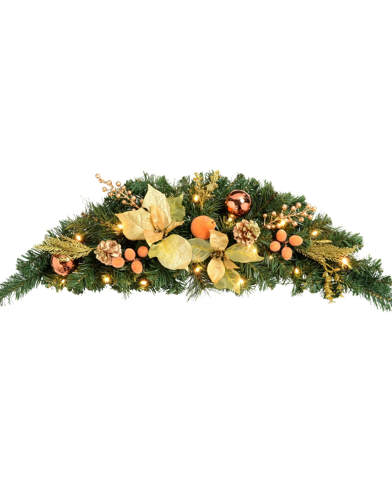 WeRChristmas Decorated Garlands|Pre Lit Garlands^Pre-Lit Decorated Arch Garland With 20 Warm White LEDs, Copper/Gold, 3 Ft