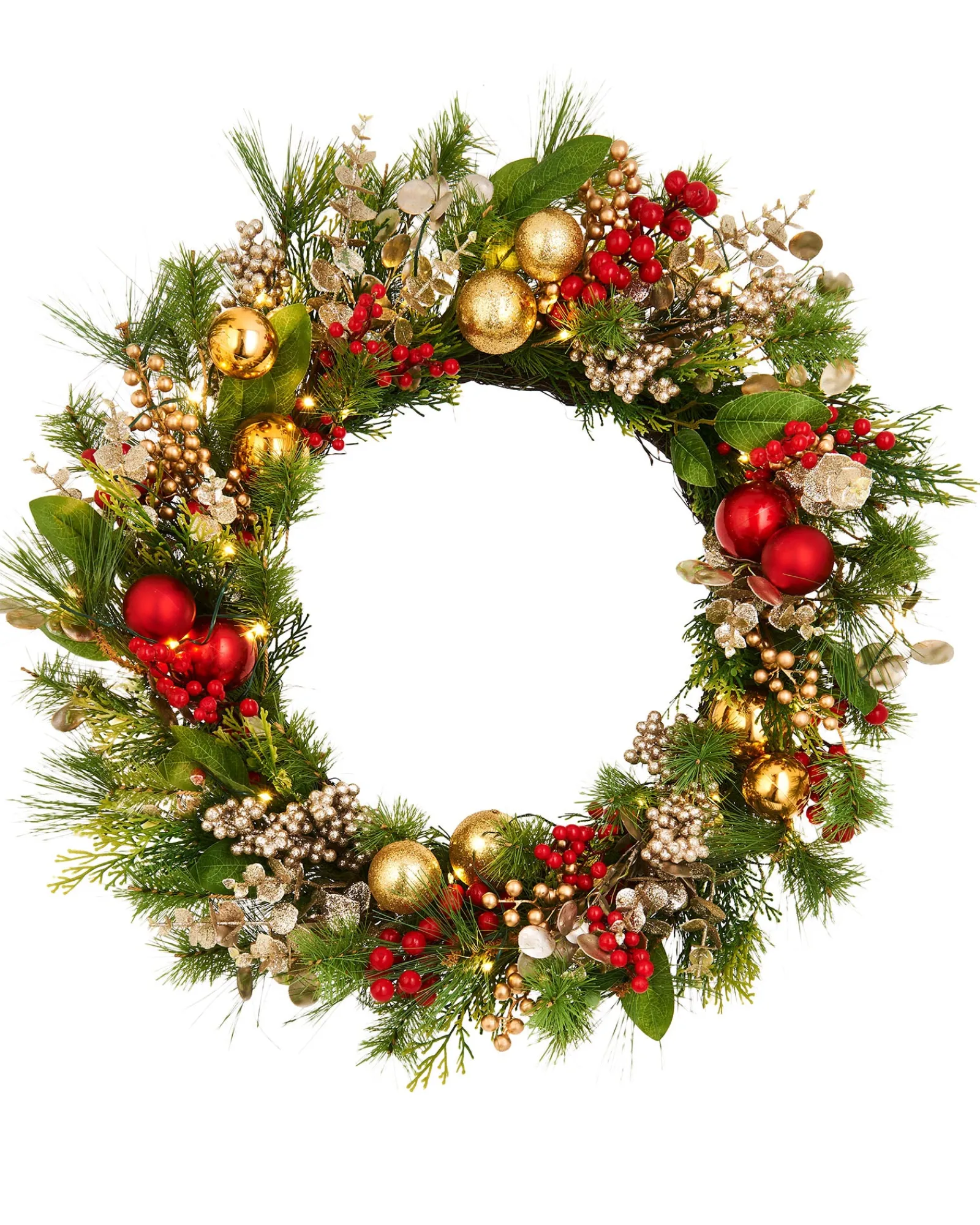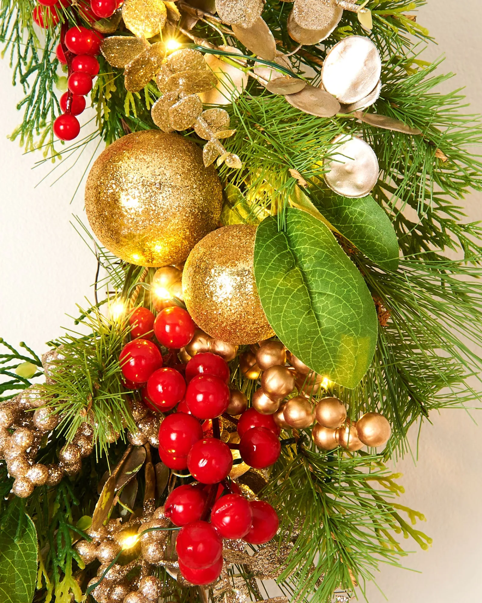 WeRChristmas Decorated Wreaths|Pre Lit Wreaths^Pre-Lit Red Berry Mixed Tip Wreath, 76 Cm