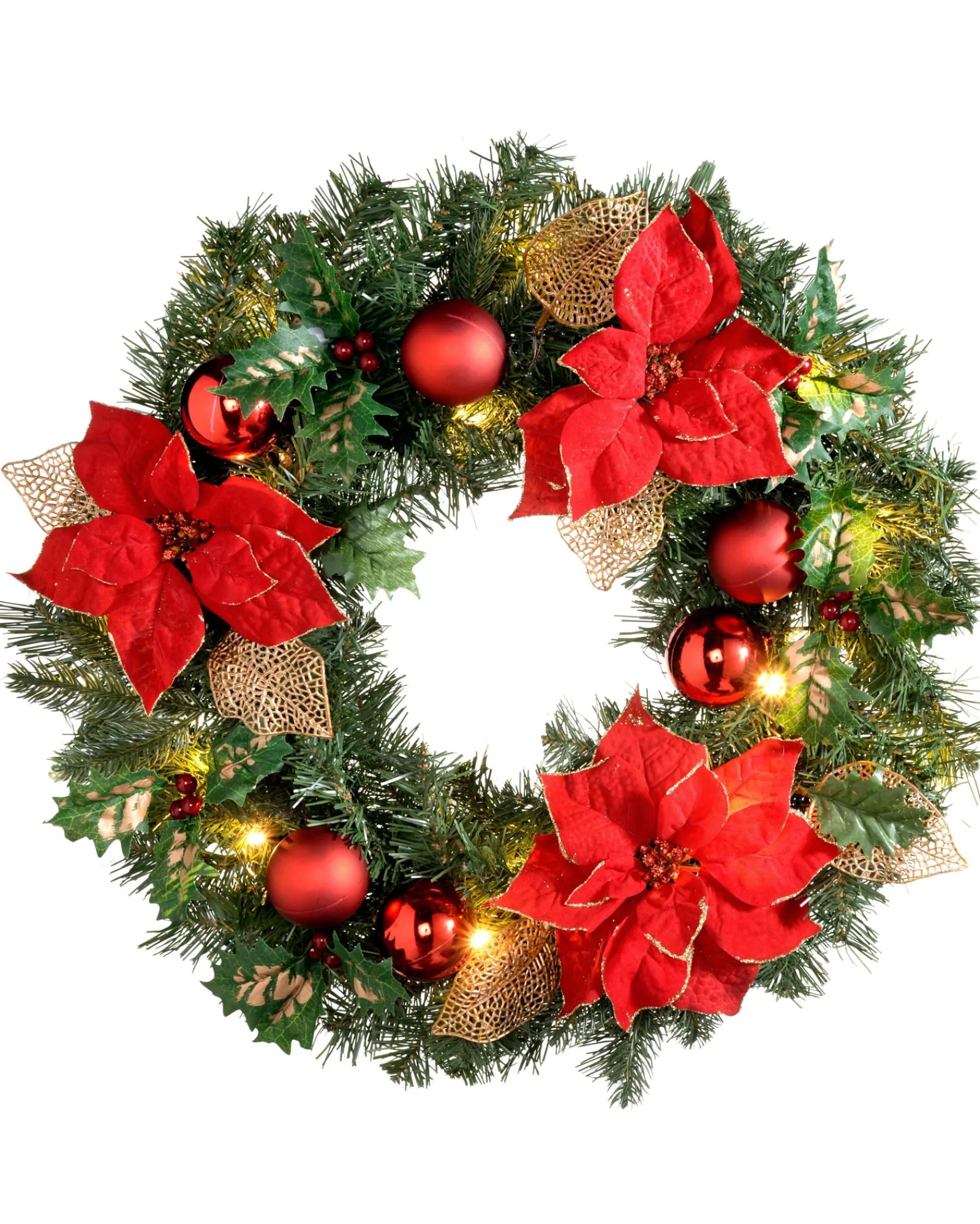 Welcome the enchantment of Christmas with this Pre-Lit Decorated Wreath and create a warm and inviting ambiance in your home.