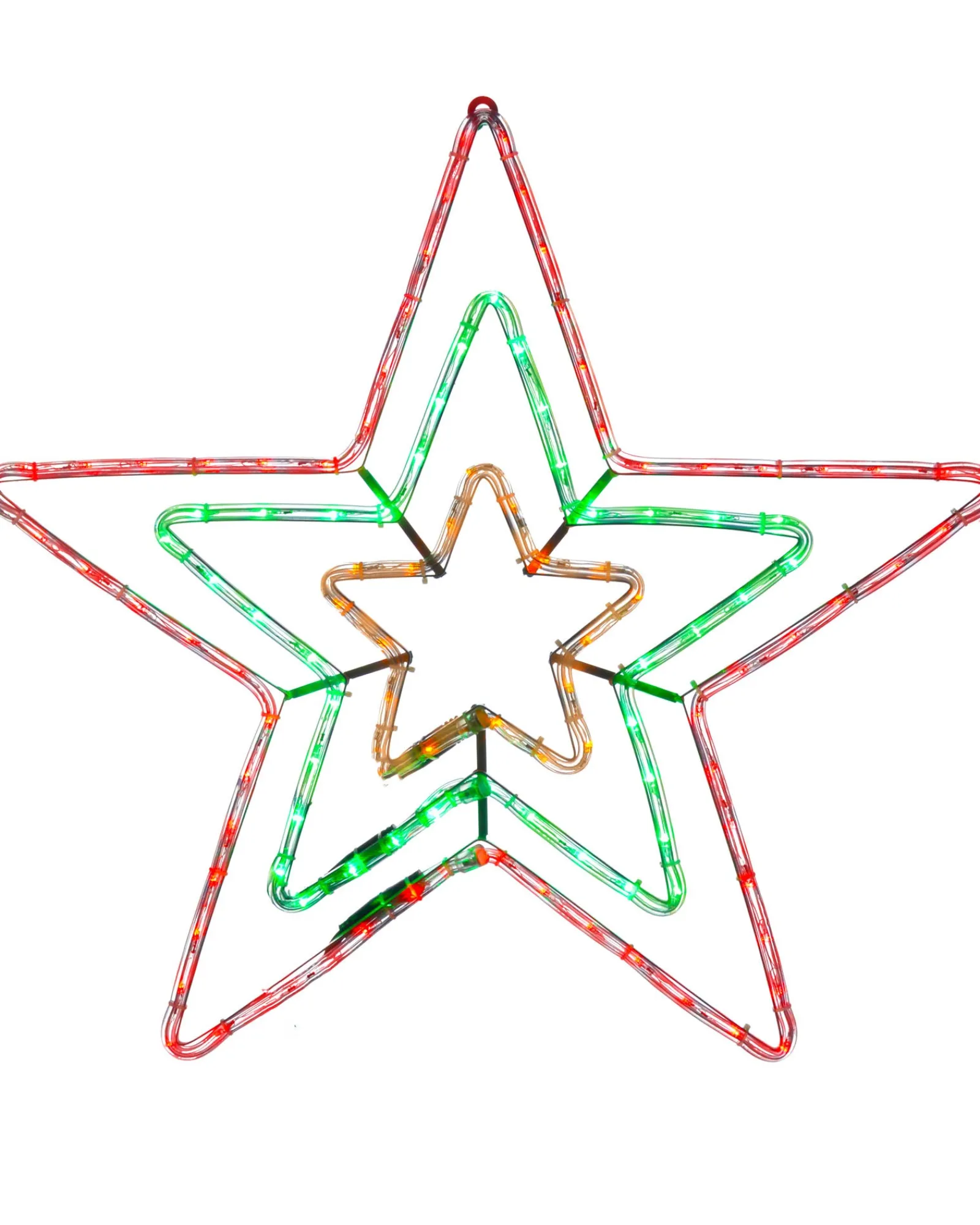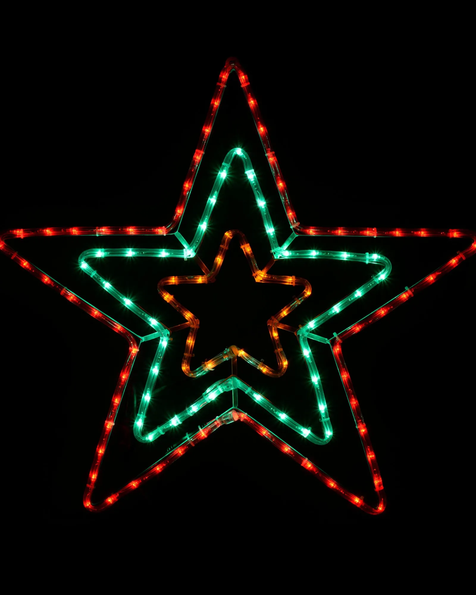 Add a touch of magic to your Christmas display with this Animated Flashing Star Rope Light Silhouette. This festive decoration features a triple star silhouette where the red and green flashing from inner to outer star that is sure to add a touch of sparkle to your indoor or outdoor décor.