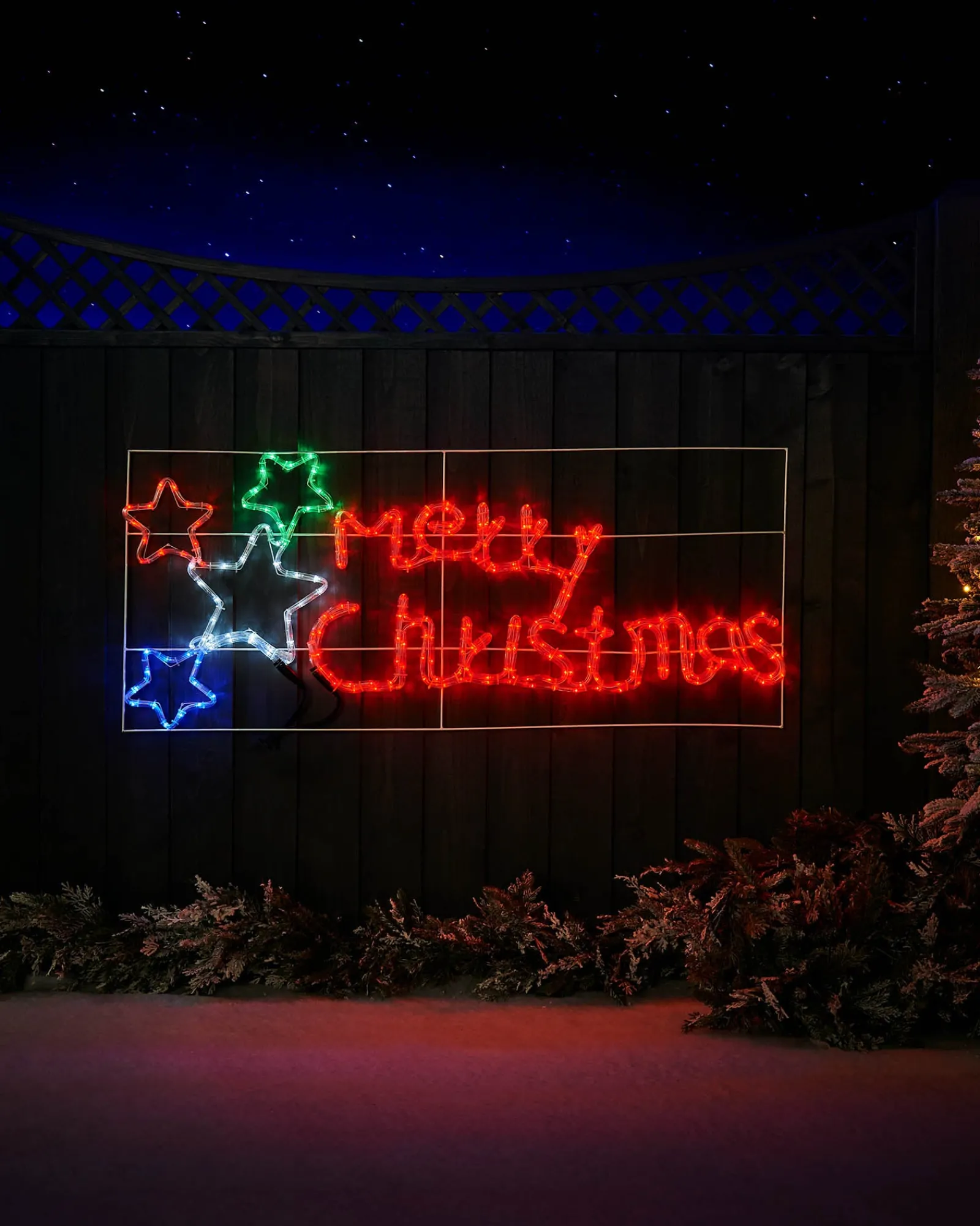 WeRChristmas Festive Star, Snowflake & Sign Lights^Merry Christmas Rope Light Silhouette, 125 Cm