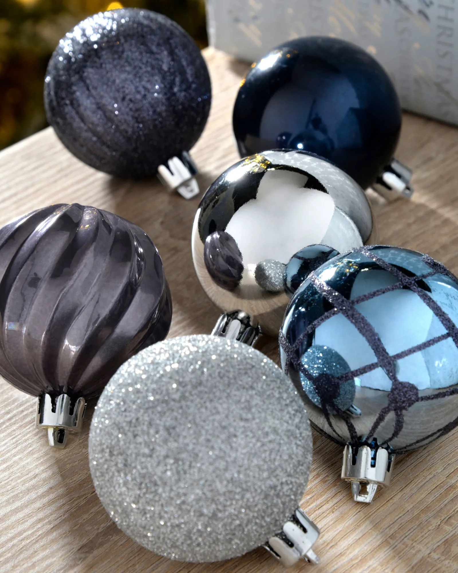 Unveil the enchantment of the festive season with the 48-Piece Shatterproof Luxury Christmas Tree Baubles in a captivating palette of navy and silver hues, an exquisite collection destined to transform your festive décor into a symphony of elegance and timeless charm.