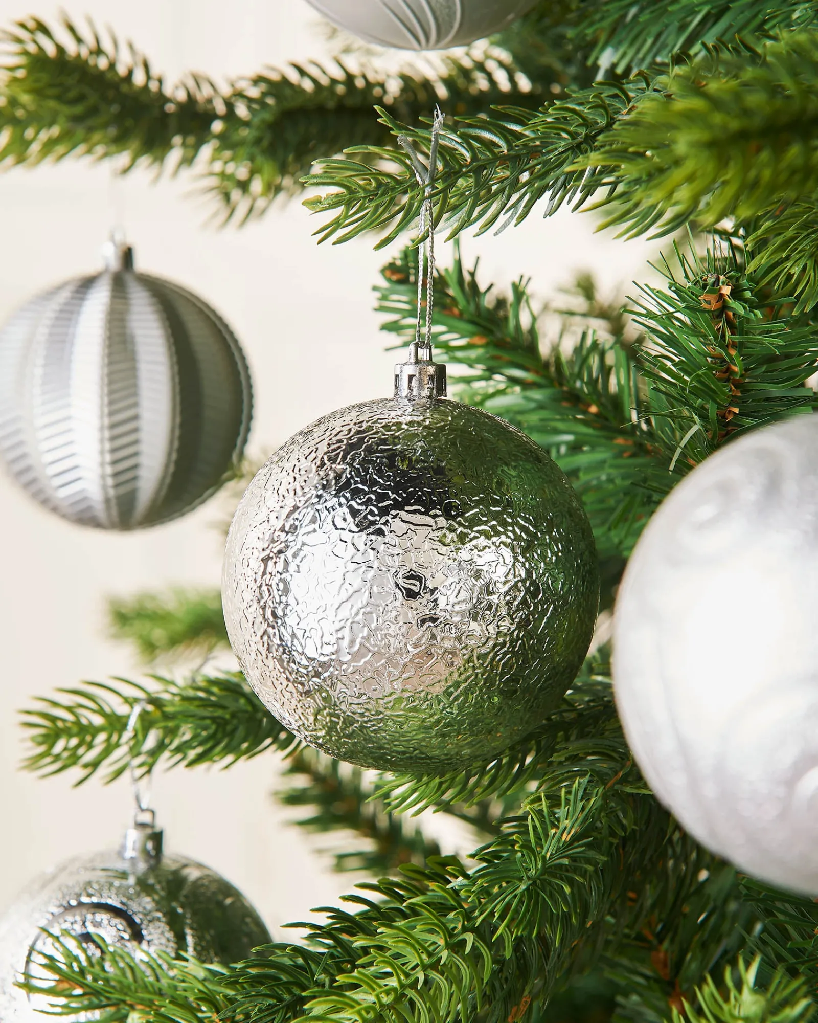 Introducing the Silver Shatterproof Bauble, 16 Pack the perfect addition to your festive décor collection. Made with durability in mind, these baubles are crafted to withstand accidental falls and impacts, making them safe for use around children and pets.This pack includes 16 baubles that are 8 cm in size and come in a variety of finishes including 4 patterns, offering a range of textures and shine to enhance your seasonal display.Each bauble comes with a Silver hanging string included, making it easy to hang them on your tree, wreath, or garland. With the Shatterproof Baubles 16 Pack, you can enjoy the festive season without worrying about broken decorations.