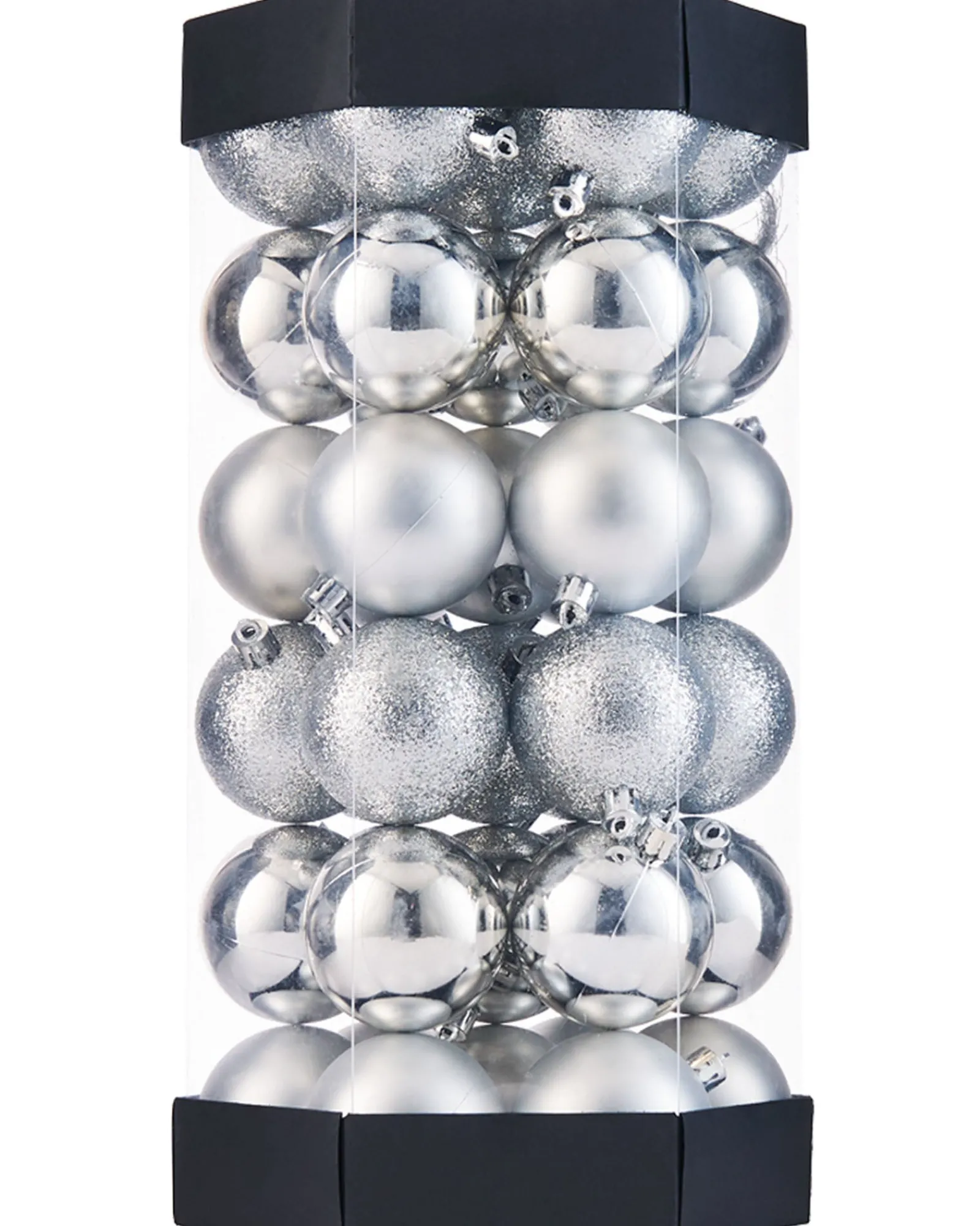 Elevate the festive spirit of your home with this exquisite set of 42 baubles, exuding a timeless charm that complements any Christmas tree. Though they bear a classic and simple design, their presence creates a striking visual as they dangle gracefully from verdant branches.