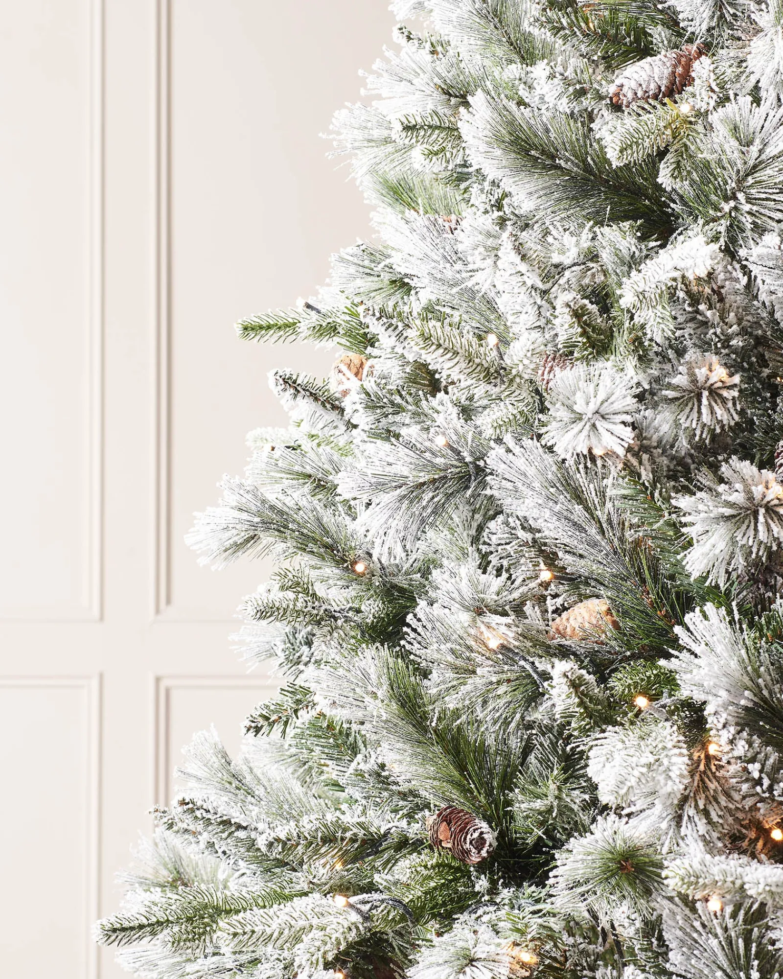 Nestled among the branches, you will find an assortment of pinecones, adding a touch of rustic charm and further enhancing the natural woodland appeal of the tree.