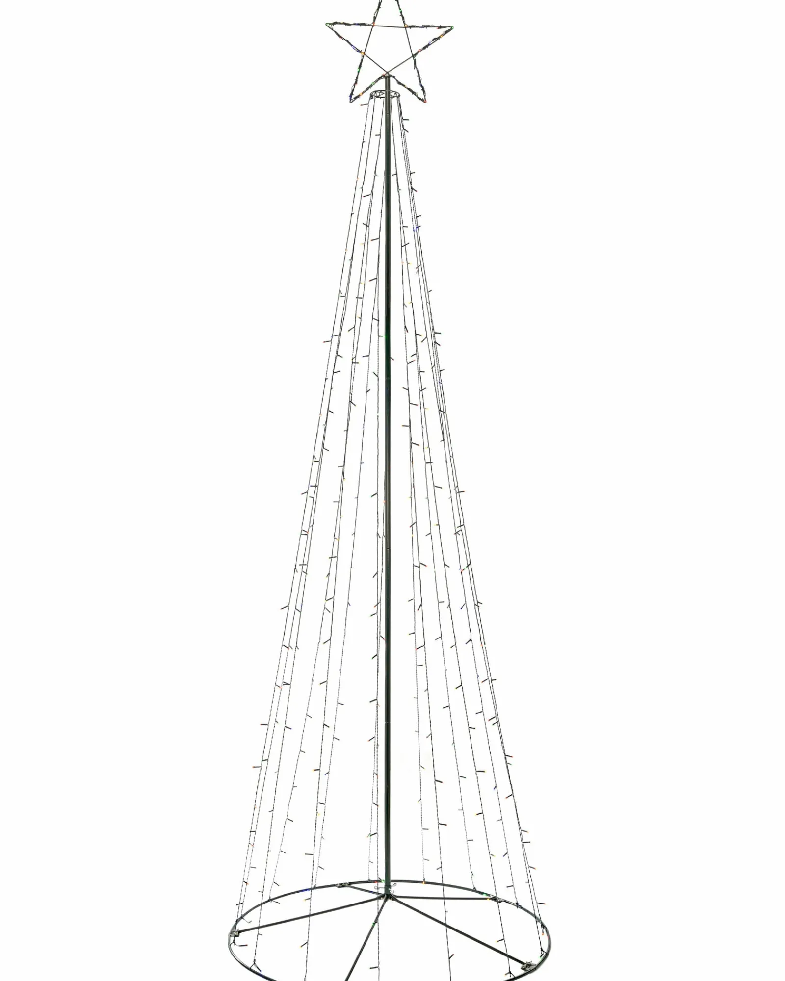 This multi-coloured pop up Christmas tree is a simple quick way to decorate your home this Christmas. It features a green frame with a hinged construction for easy set up. It has a star on its top and has strings of multi colour LED lights falling down its sides.