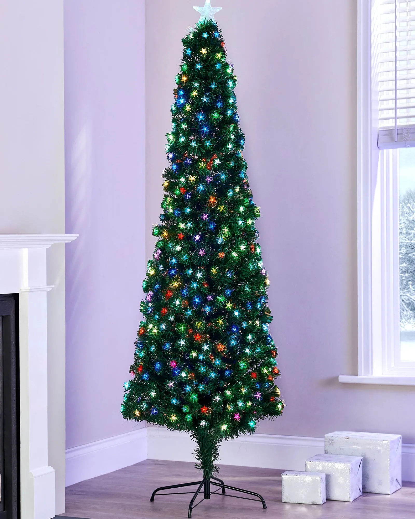 WeRChristmas Budget Christmas Trees|Fibre Optic Christmas Trees^Pre-Lit Fibre Optic Pencil Christmas Tree With Multi-Coloured LED Stars, 5 Ft