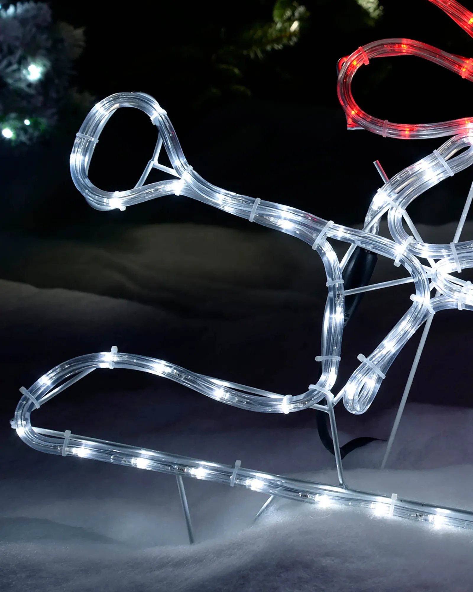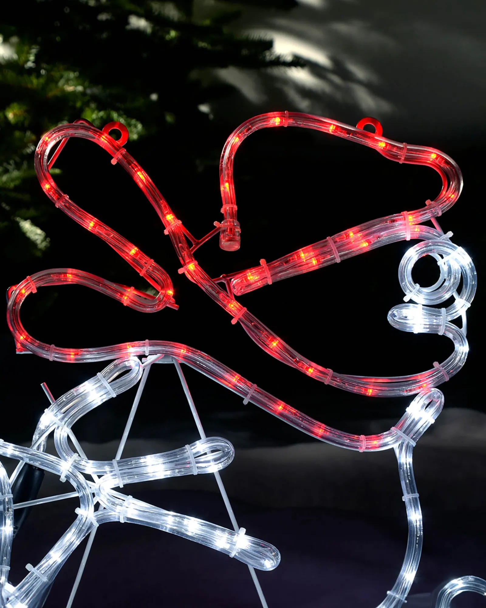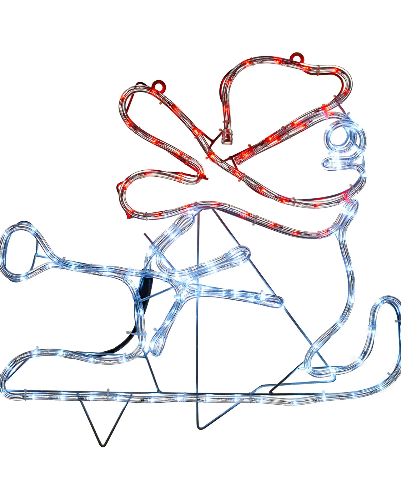 Add a touch of winter magic to your home this Christmas with the LED Snowman Rope Light Window Silhouette. This delightful silhouette features a smiling snowman skiing, all illuminated by the red and white LED lights.