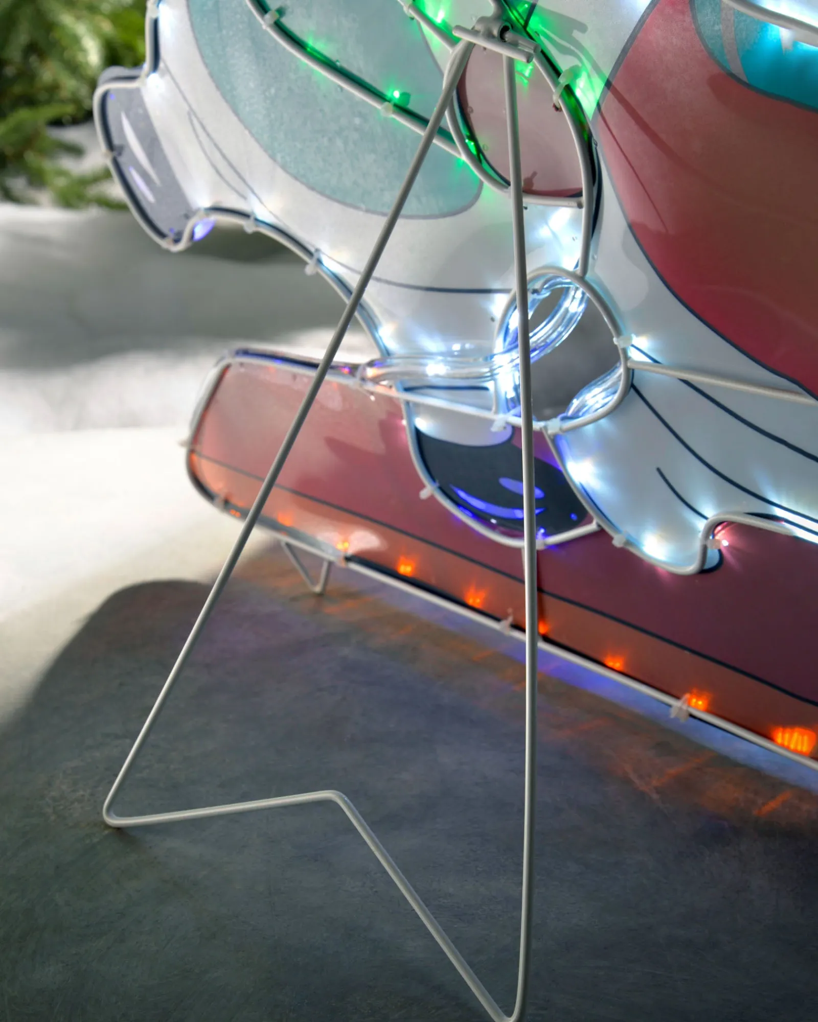 The rope light is very bright and durable, making it ideal for use in all weather conditions. This decoration features a stand and hanging hooks so you can set this up as free standing or mount it to a wall easily. If you are using this outside, please ensure the plug is mounted indoors or in a waterproof socket.