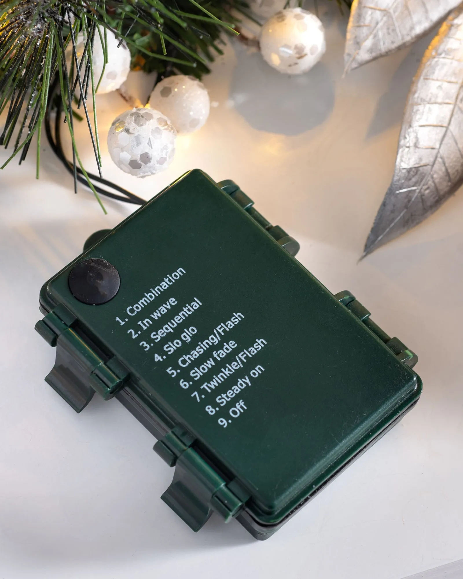 Powered by 3xAA batteries (not included), the LED lights boast an 8-function controller, allowing for a diverse range of lighting displays. From steady glows to playful twinkles, the choices are at your fingertips. Moreover, an in-built timer function enables you to programme the lights to stay illuminated for 6 hours, automatically switching off for the next 18, ensuring your festive arrangements remain effortless.