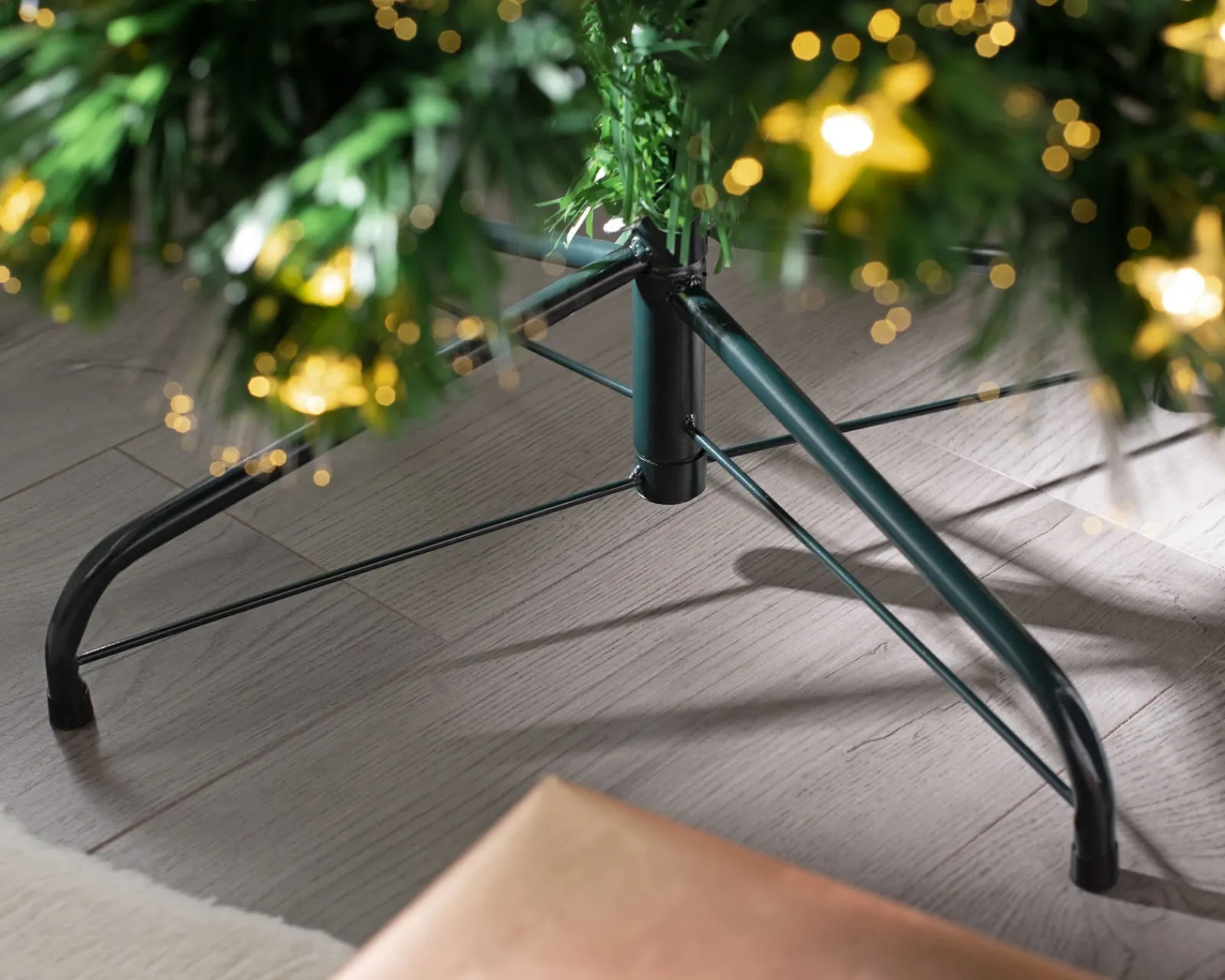 Embedded within its slender frame, 189 warm white LEDs illuminate the surroundings with a gentle, golden hue. These LEDs harmoniously blend with the tree’s fibre optics, creating a dazzling play of light that mimics a canopy of stars on a serene winter’s night.