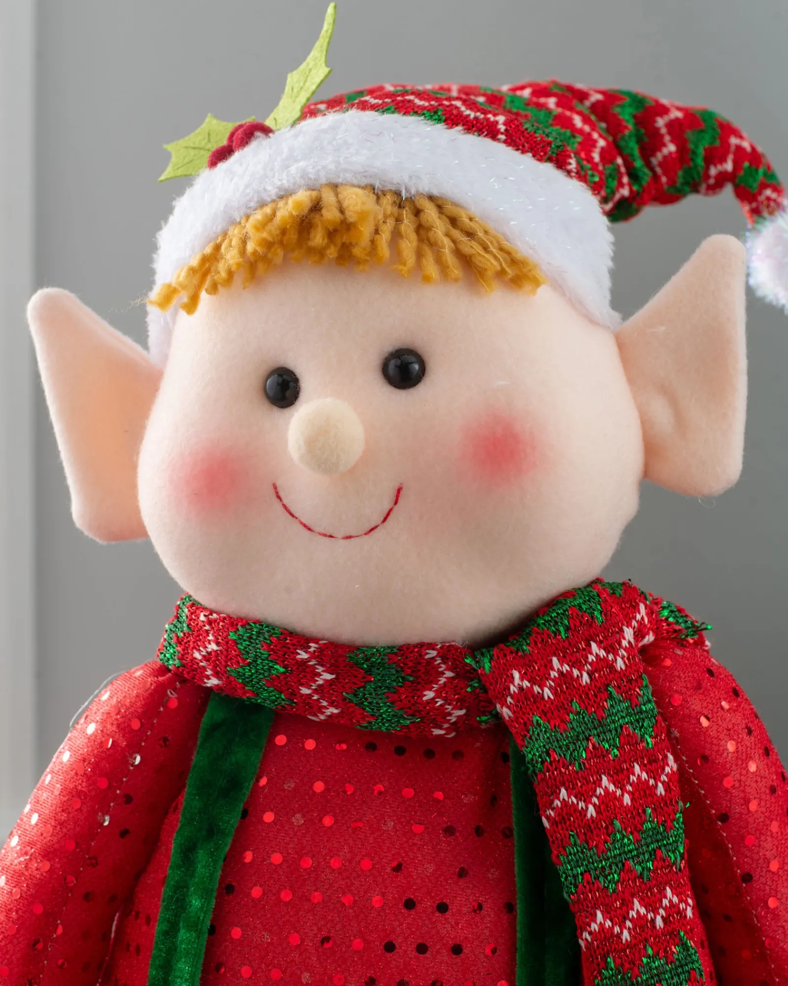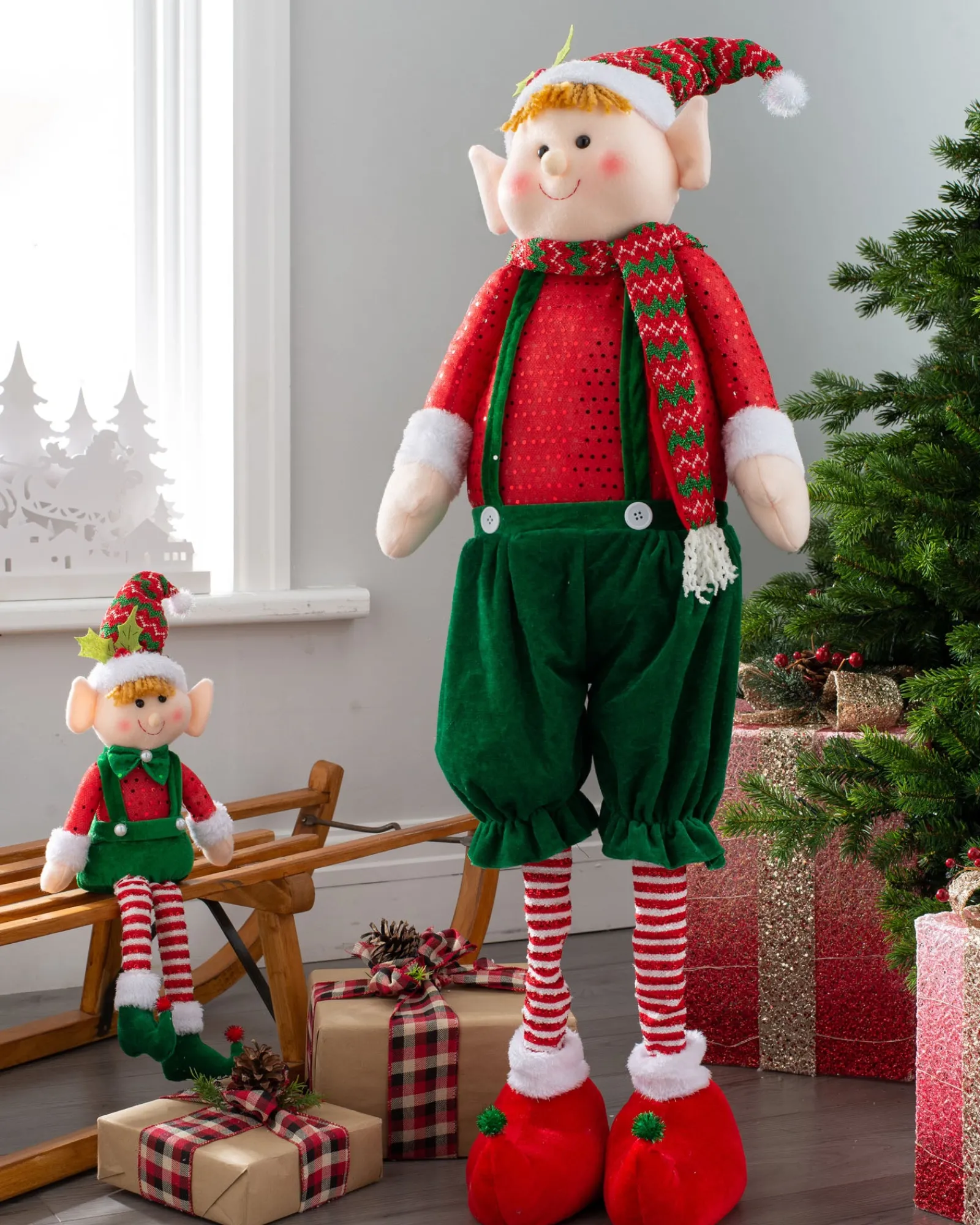 Elevate your indoor wonderland with a touch of elfin magic, courtesy of our joyful Standing Elf Boy.