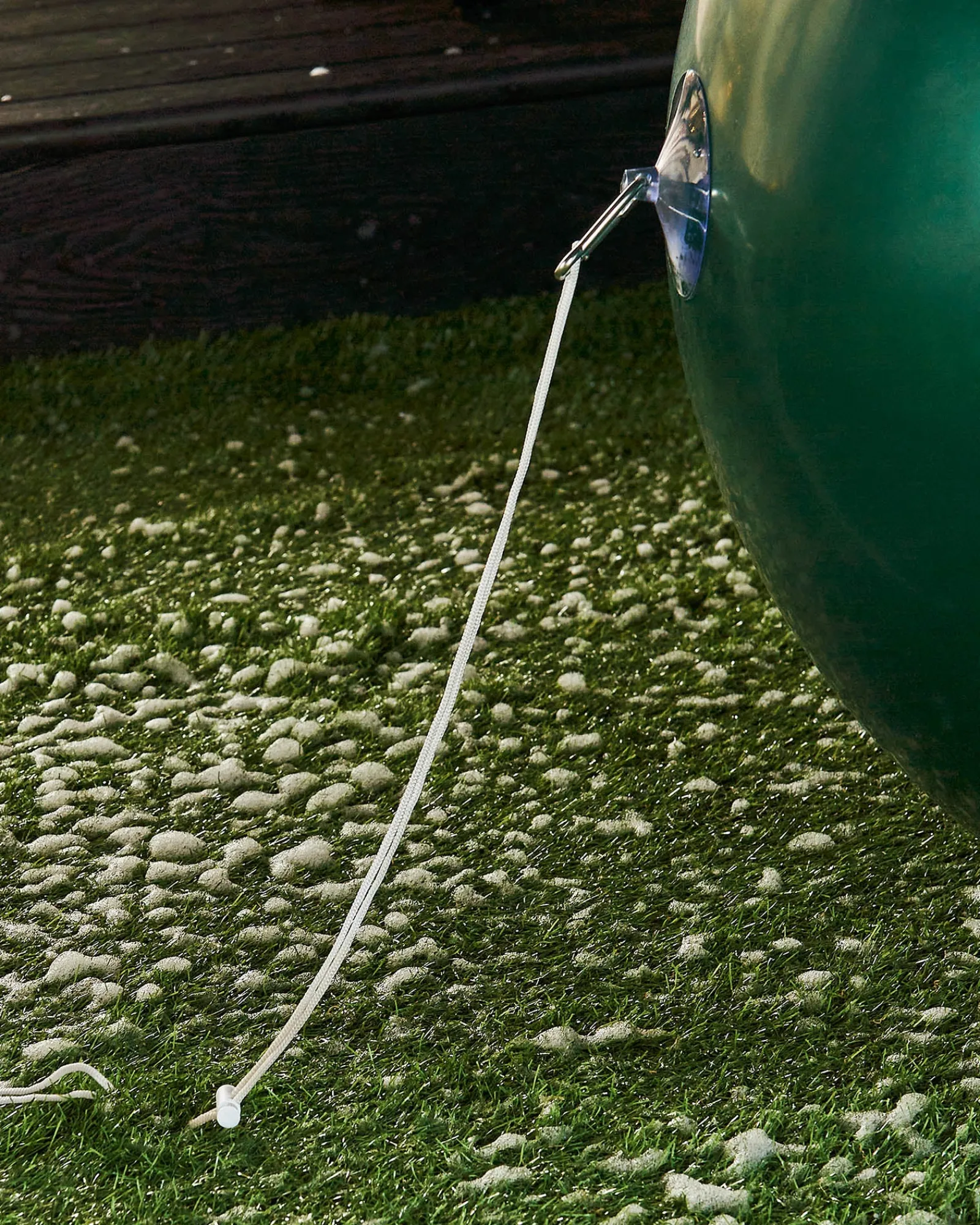 This set is comprehensive and includes everything needed for setup and display. A handy air pump allows for quick inflation, while a suction cap with a steel buckle offers alternative hanging solutions. The set also includes a white hanging rope, which attaches to the buckle, forming a loop for easy adjustment and placement. For secure outdoor installation, a plastic stake is provided, ensuring the bauble stays grounded.