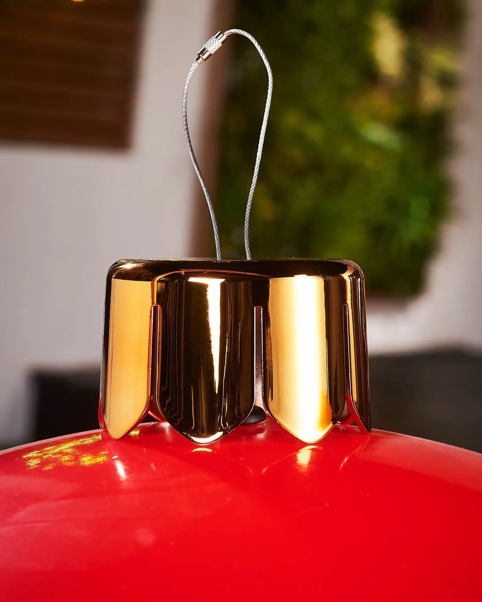 Crafted from durable PVC, the bauble inflates to a perfect sphere, ensuring it maintains its form and vibrant appearance throughout the season. It is topped with a shiny gold plastic topper that enhances its festive look. The topper is well-sized with a diameter of 9.5 cm and a height of 6.5 cm, adding an elegant finish to the baubles’ silhouette.