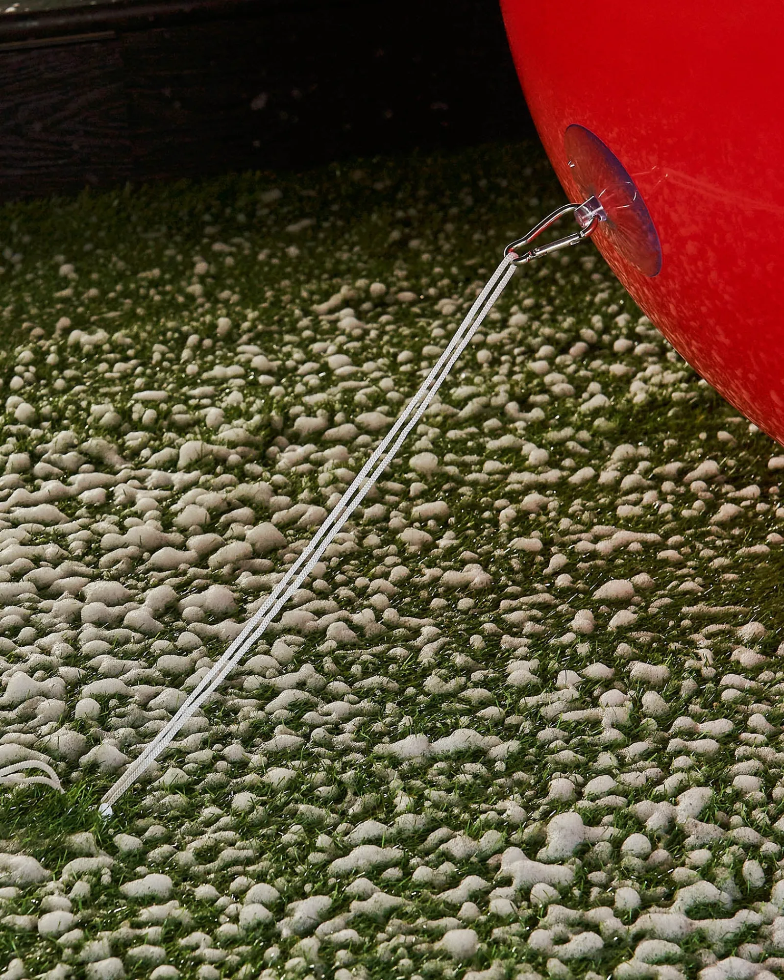 This set is comprehensive and includes everything needed for setup and display. A handy air pump allows for quick inflation, while a suction cap with a steel buckle offers alternative hanging solutions. The set also includes a white hanging rope, which attaches to the buckle, forming a loop for easy adjustment and placement. For secure outdoor installation, a plastic stake is provided, ensuring the bauble stays grounded.