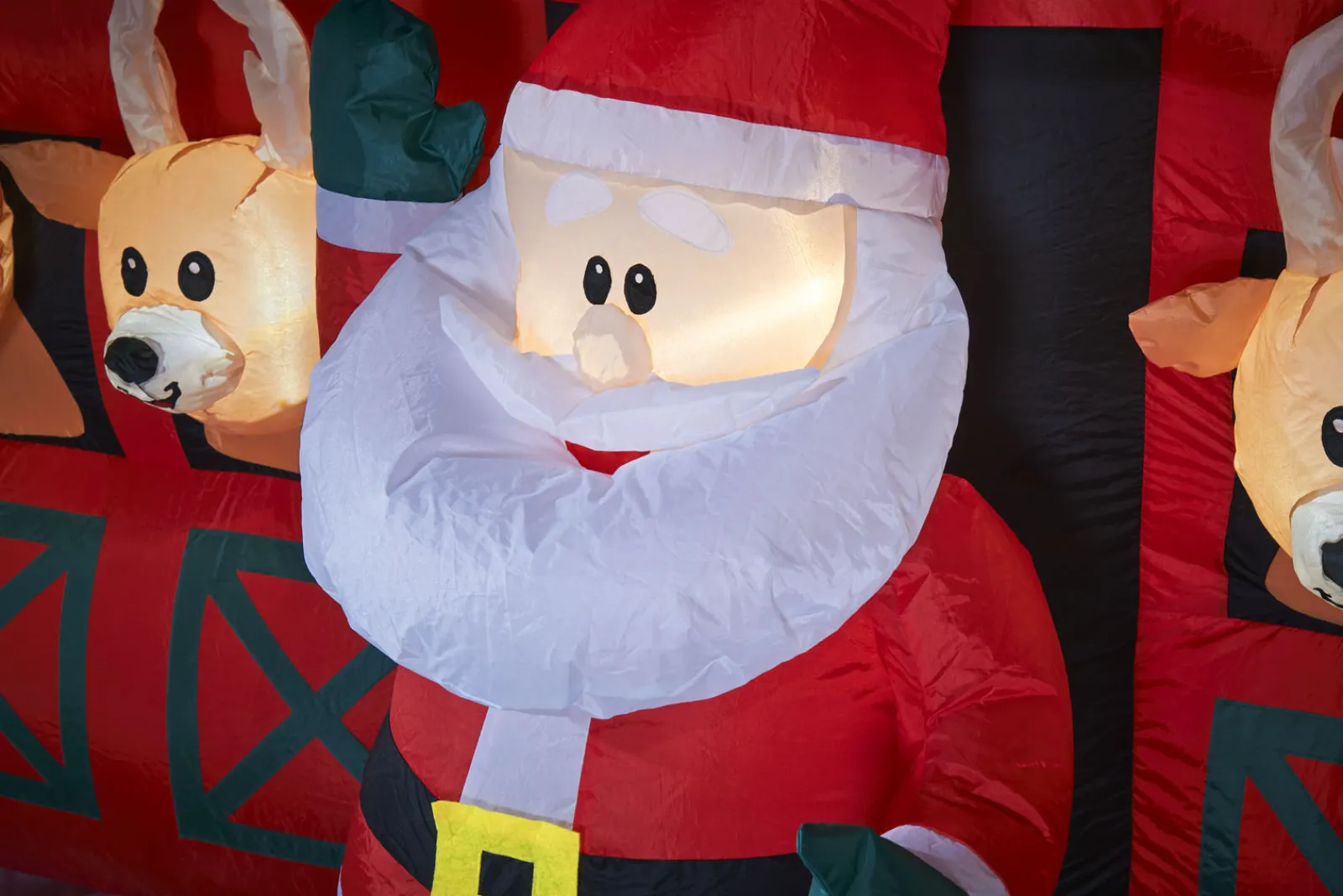 Make Christmas bright with this Pre-Lit Inflatable Santa & Reindeer Stables. This whimsical decoration is a great addition to your outdoor display. Featuring a fun and attention-grabbing design, this garden accessory is bound to be the talk of the neighbourhood.