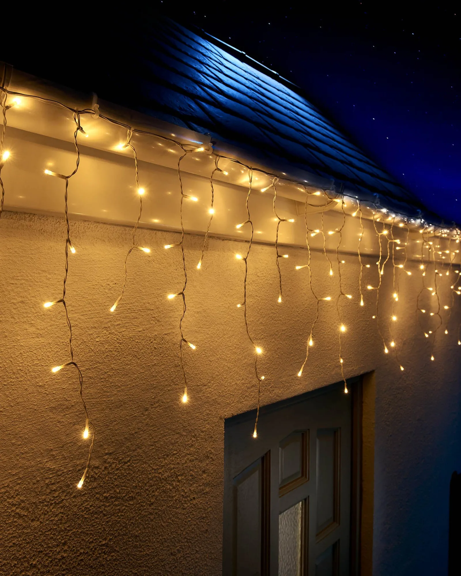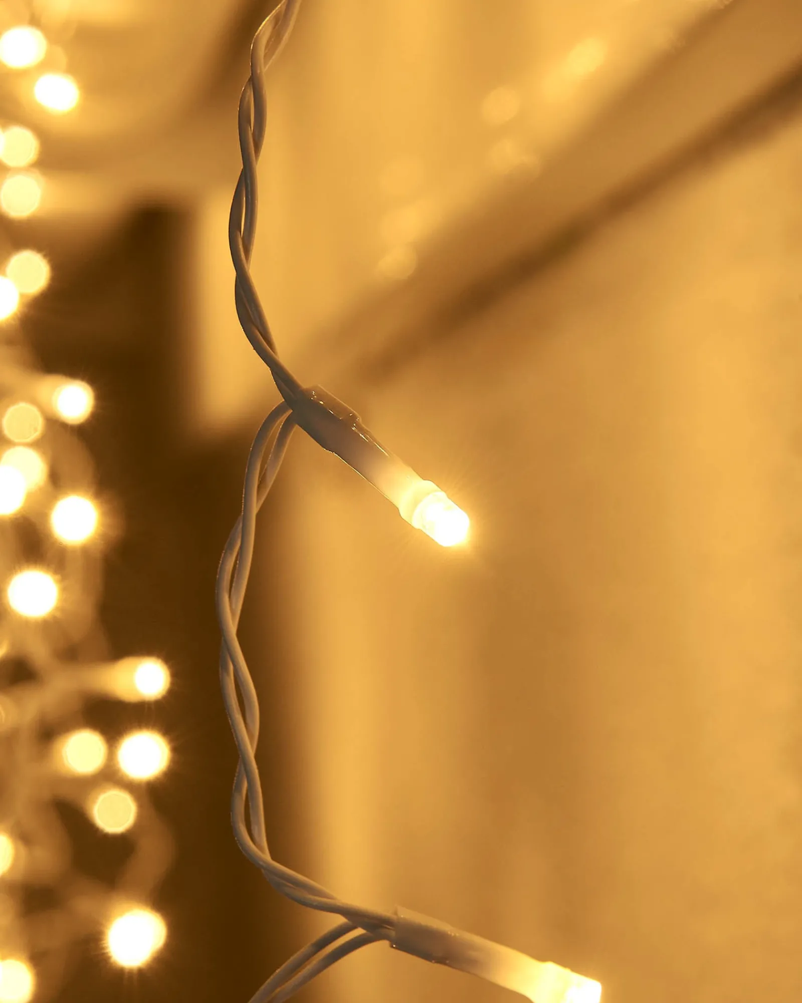 These LED Icicle Lights feature a durable white rubber cable and comes in a combination of 2 m and/or them as needed. Featuring a cascading design of icicles, these lights add a touch of sophistication and charm to any setting. The warm white LEDs emit a soft, inviting glow that creates a cosy and relaxing atmosphere.