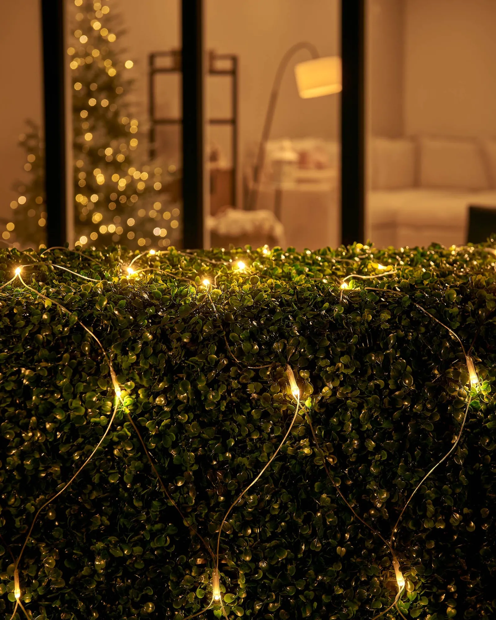 These LED Net Lights feature a durable transparent rubber cable and come in 3 m lengths, each section can be easily connected, allowing you to create displays of any size. The net-like structure allows for flexible and creative placement, making it ideal for wrapping around objects or creating large-scale displays. The warm white LEDs emit a soft, inviting glow that creates a cosy and relaxing atmosphere.
