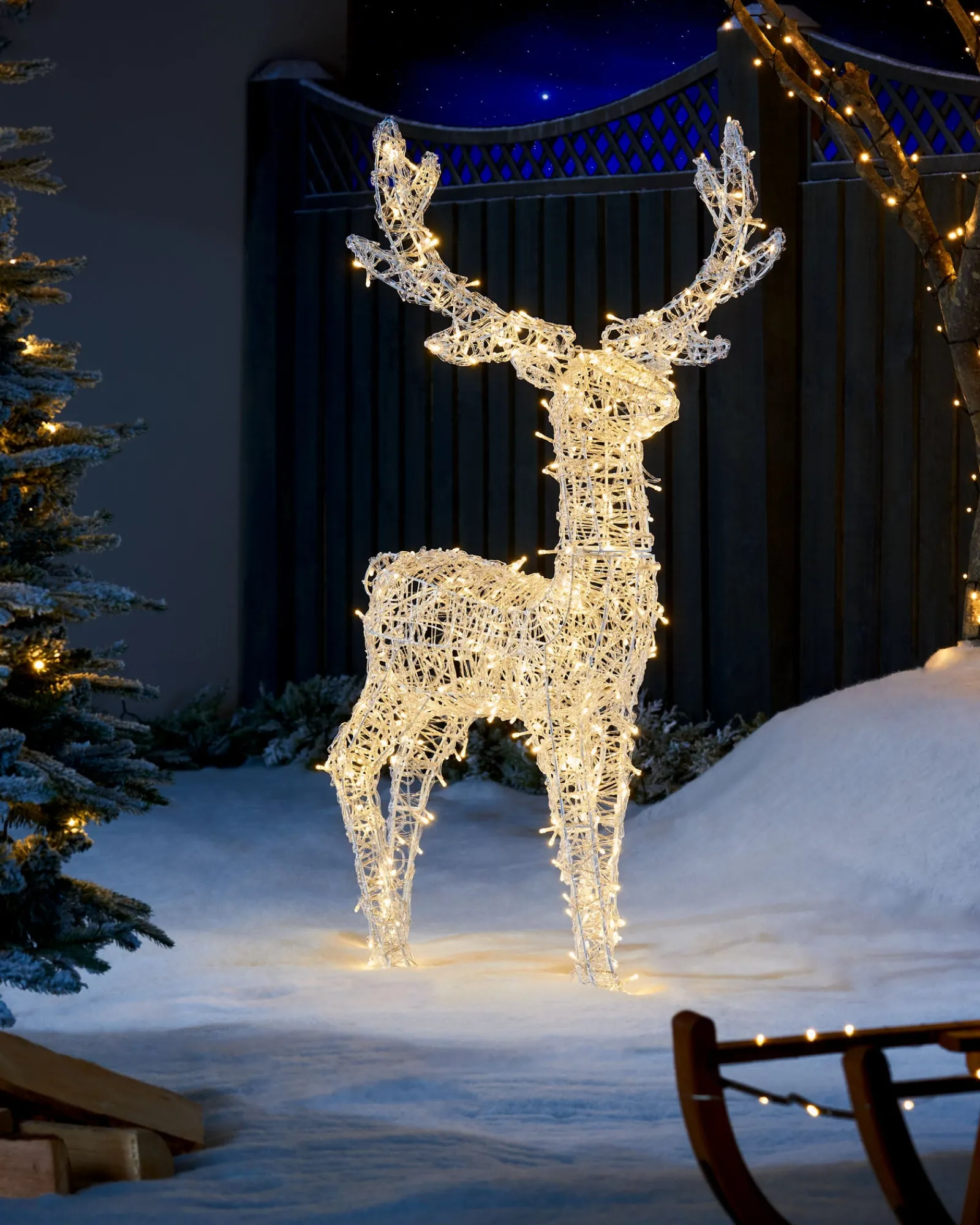 As the twinkling lights illuminate its graceful form, this reindeer will transport you to a realm of enchantment and wonder. Its elegant silhouette will add a touch of sophistication to your décor, while its warm glow will create a cosy and inviting atmosphere.