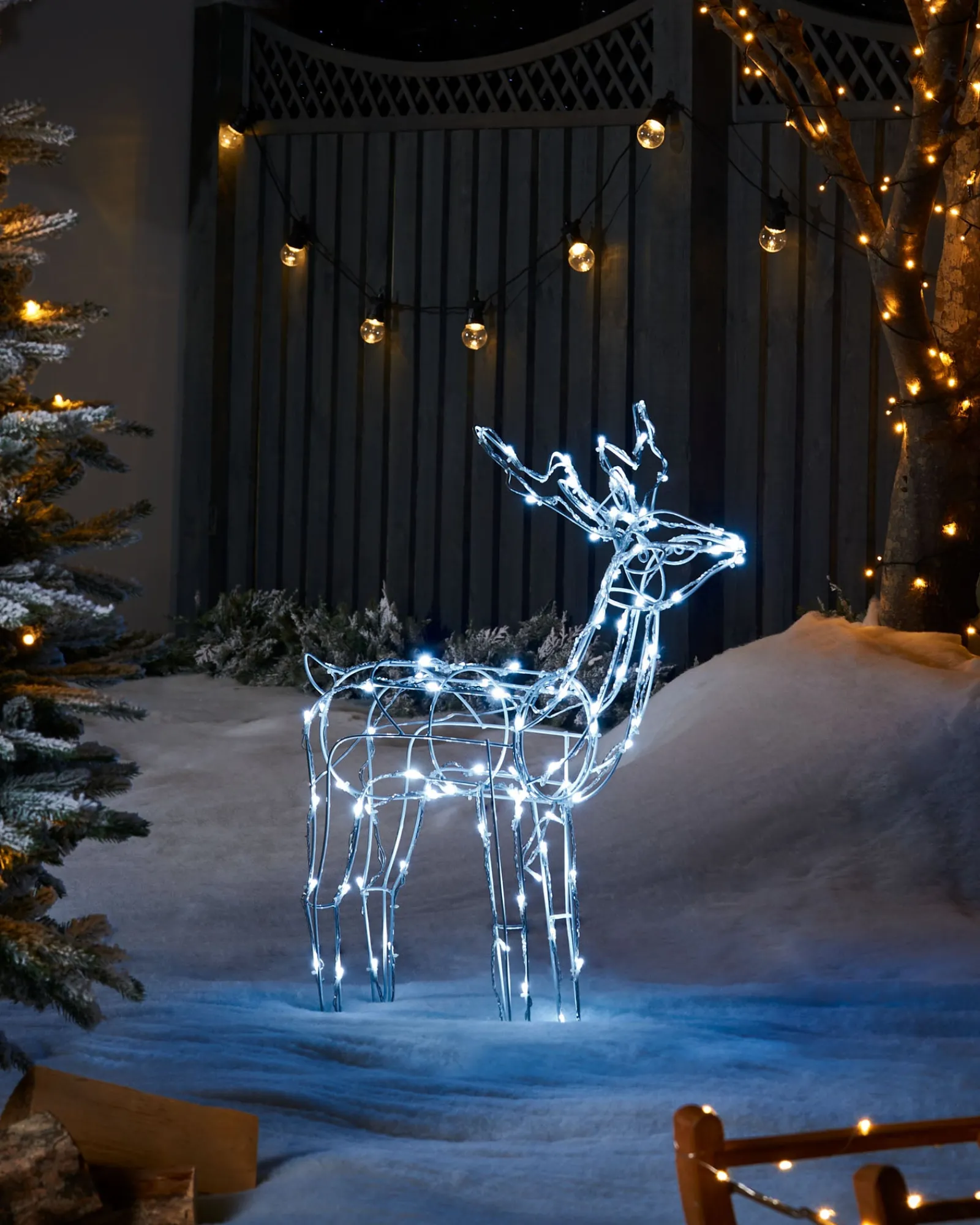 WeRChristmas Outdoor Lighted Reindeer^3D Twinkling Standing Reindeer Silhouette, White, 78 Cm