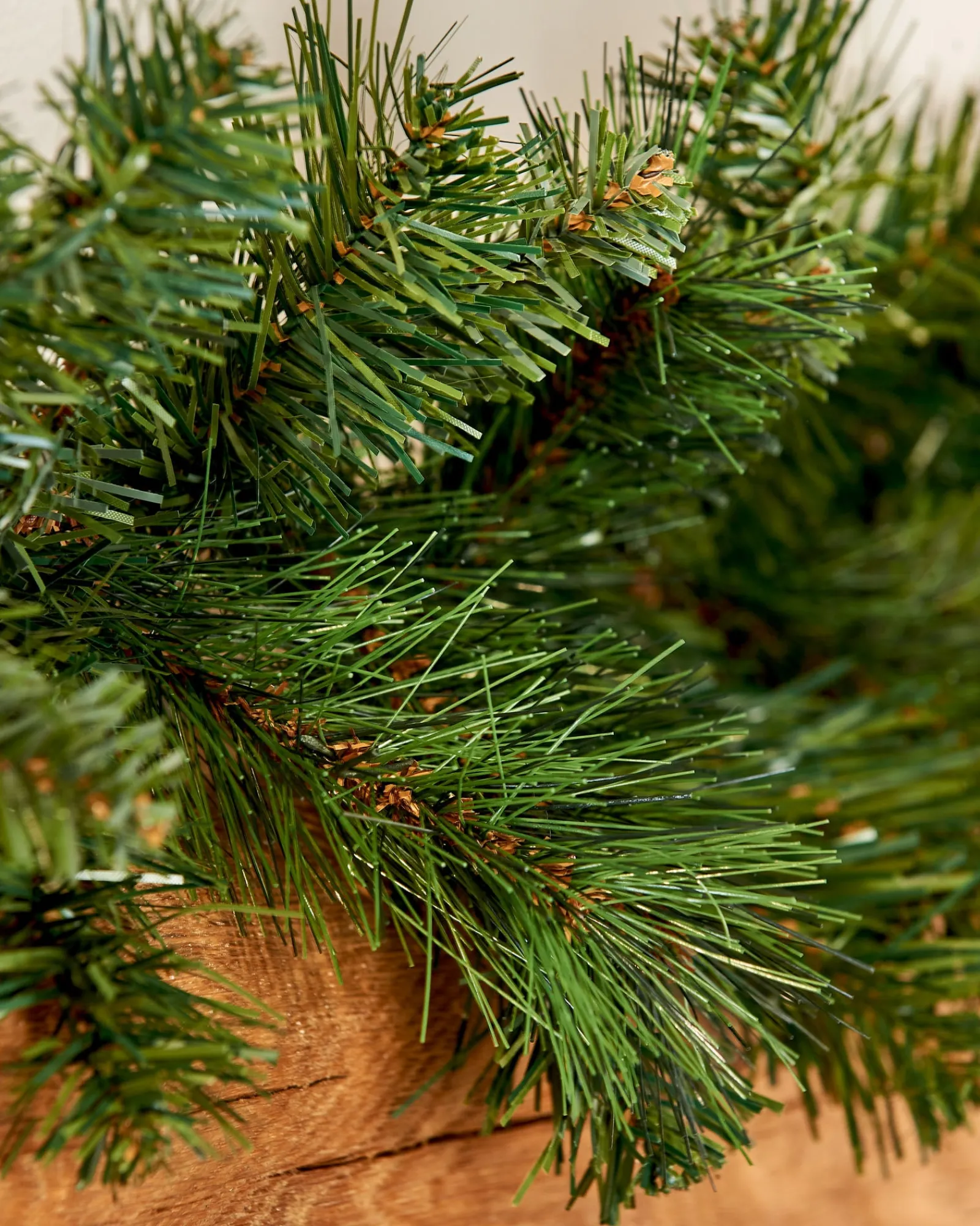 Indulge in the traditional beauty of Christmas with this elegant garland, featuring realistic pine needles that evoke the grandeur of a Victorian festive celebration. The lifelike needles boast a rich green hue, reminiscent of the evergreen trees that adorned Victorian homes during the festive season times.