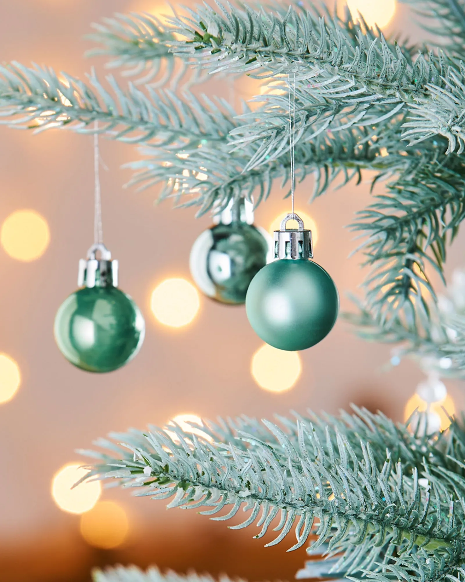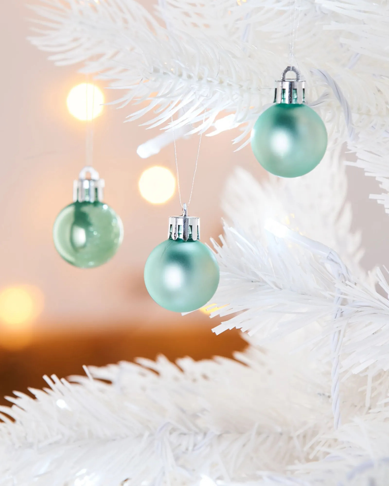 Uniformly sized at a dainty 3 cm, each bauble is accompanied by its own hanging string, ensuring you can effortlessly beautify your tree. These splendid baubles promise to bestow a festive ambiance upon your household, enhancing your seasonal décor with a dash of contemporary Mint Green elegance.