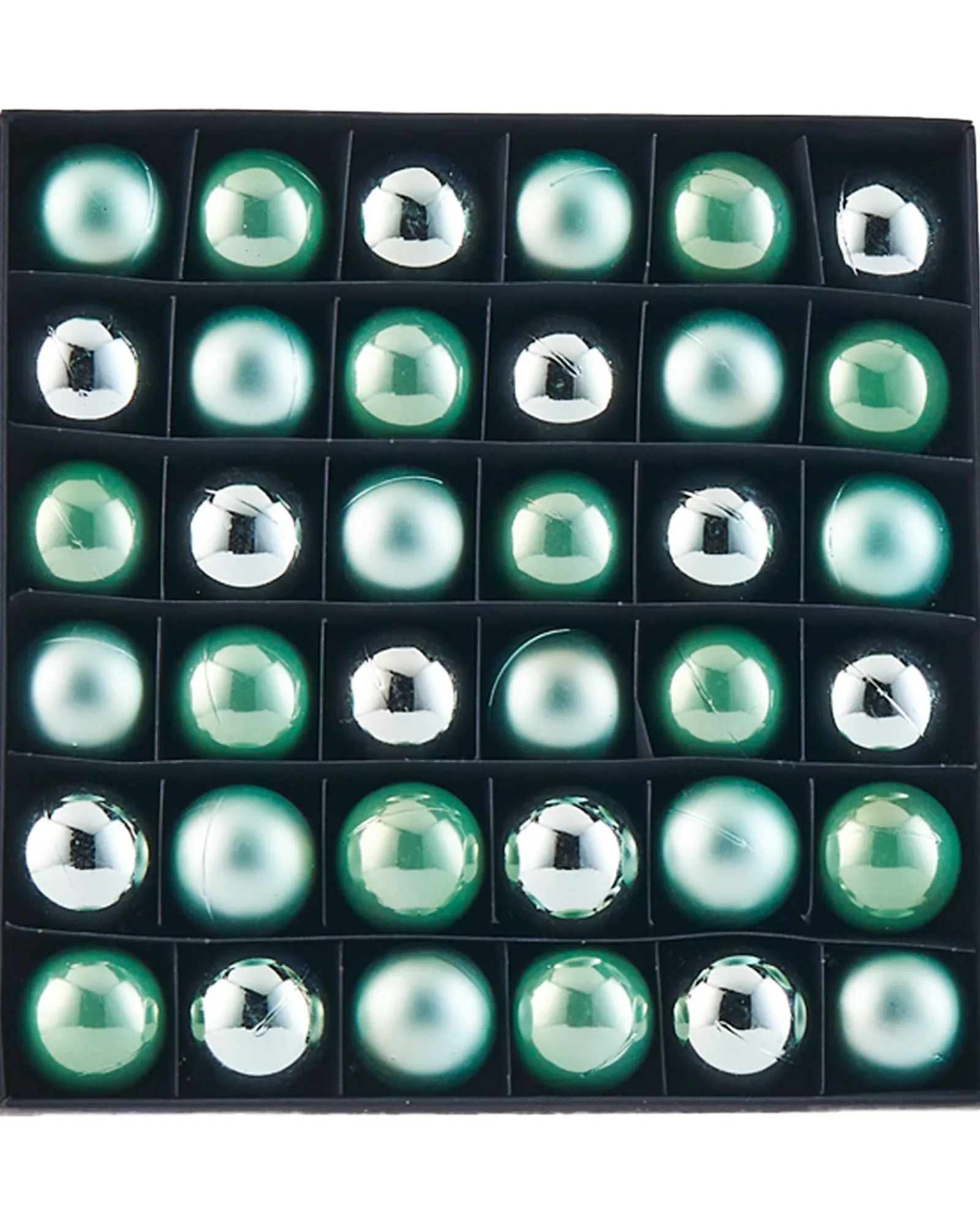 Elevate your Christmas trimmings with this exquisite set of Mint Green Shatterproof Baubles. This collection boasts a plentiful set of 36 pieces, beautifully presented in matt, shiny, and pearl finishes to afford you a rich variety of textures for adorning your festive tree.