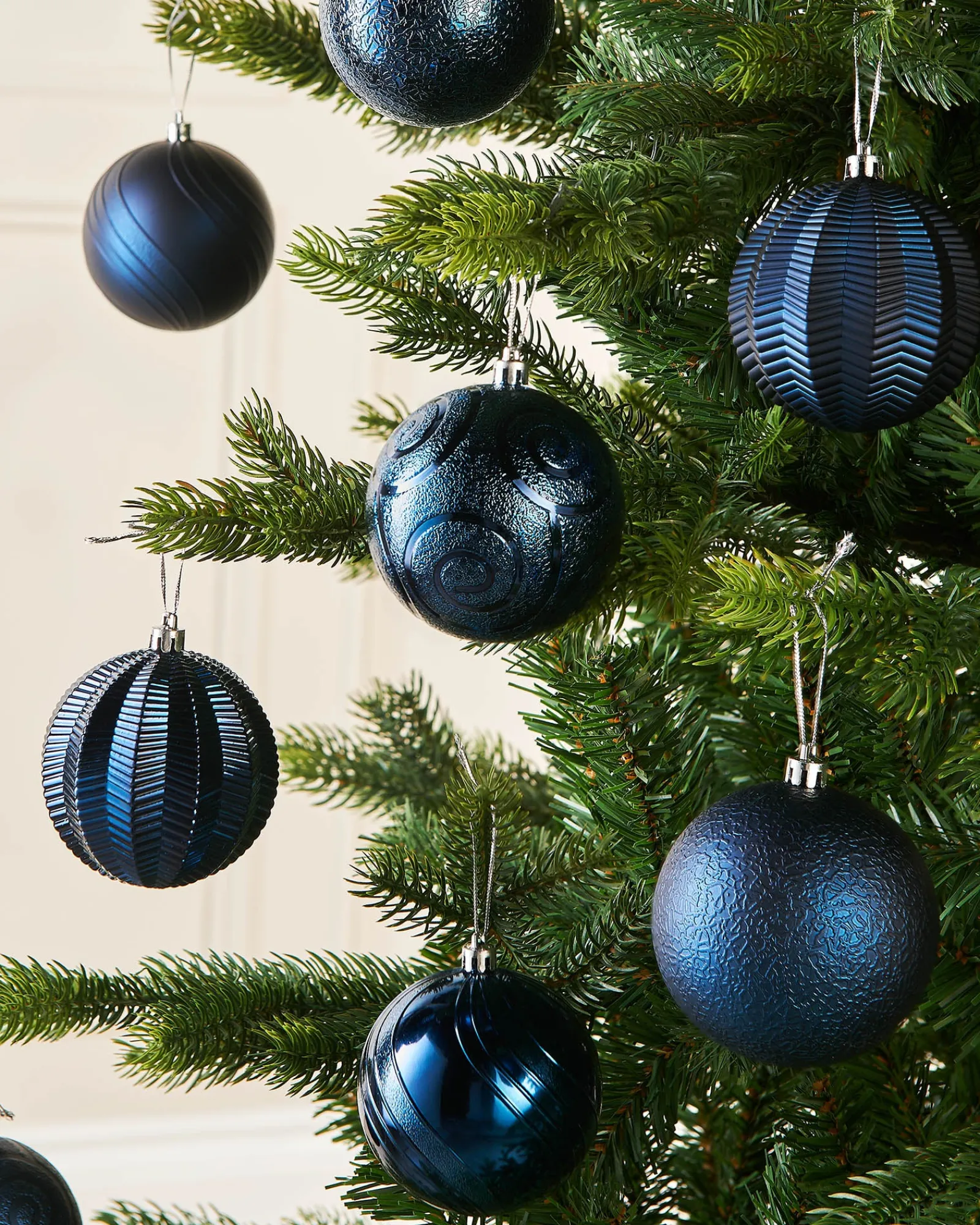 Introducing the Navy Blue Shatterproof Bauble, 16 Pack the perfect addition to your festive décor collection. Made with durability in mind, these baubles are crafted to withstand accidental falls and impacts, making them safe for use around children and pets.This pack includes 16 baubles that are 8 cm in size and come in a variety of finishes including 4 patterns, offering a range of textures and shine to enhance your seasonal display.Each bauble comes with a Silver hanging string included, making it easy to hang them on your tree, wreath, or garland. With the Shatterproof Baubles 16 Pack, you can enjoy the festive season without worrying about broken decorations.
