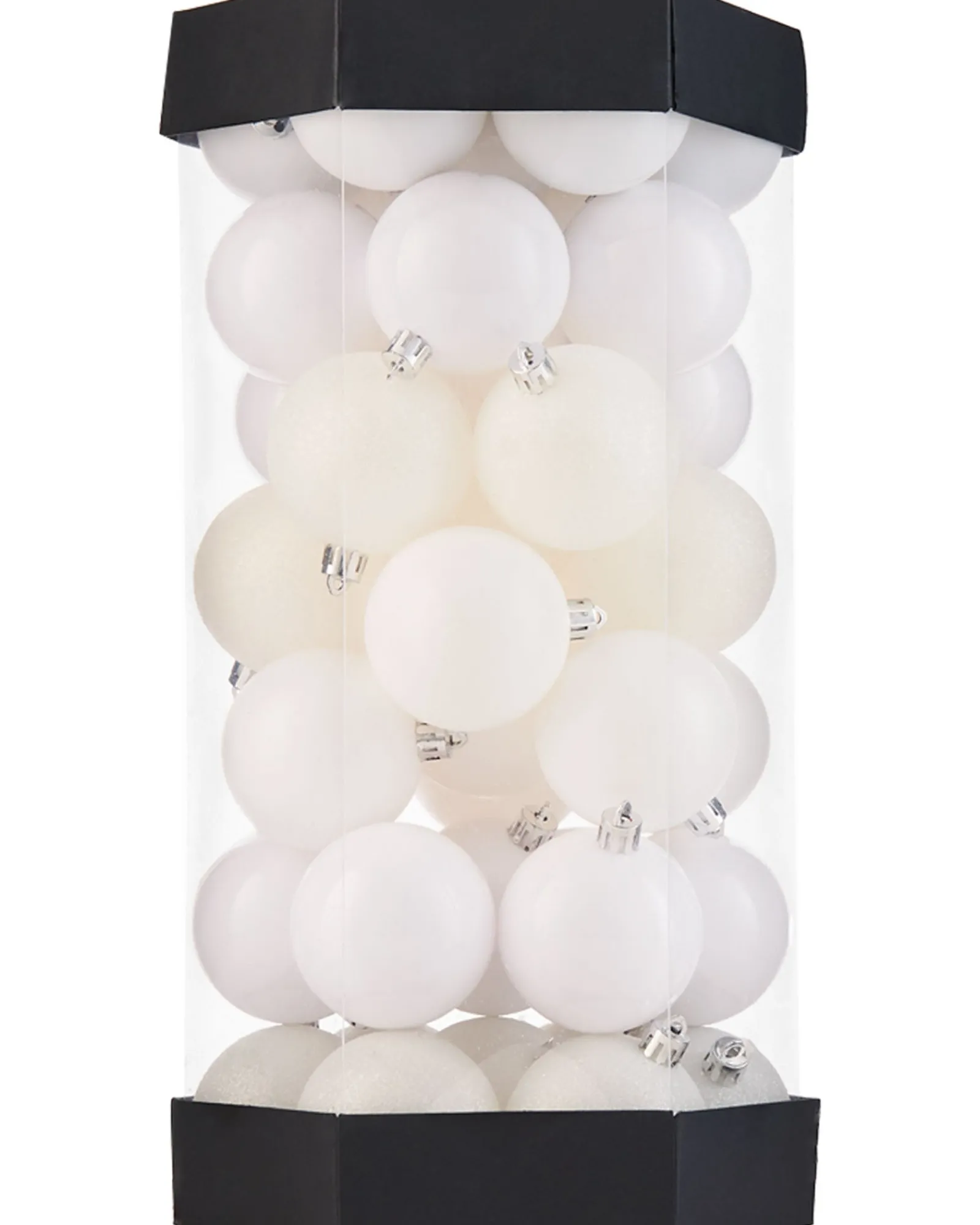 Within the collection, discover an array of finishes – from matte to shiny, and even a touch of glitter. While consistent in size, each bauble boasts a unique texture, adding a layer of depth and sophistication to your festive display.