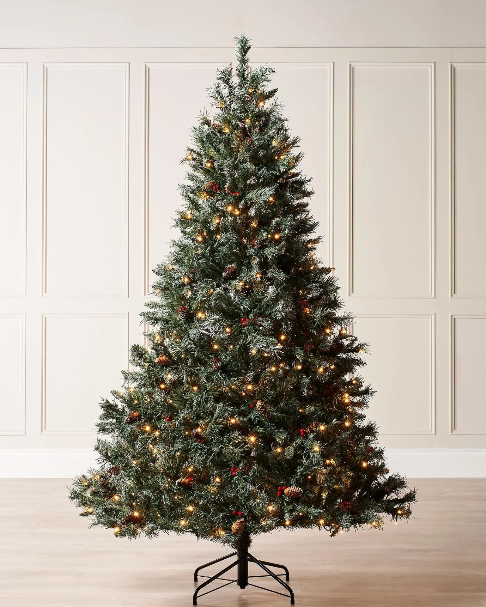WeRChristmas Snow Flocked Christmas Trees|Pre Lit Christmas Trees^Pre-Lit Scandinavian Spruce Pinecones & Berries Christmas Tree, 9 Ft