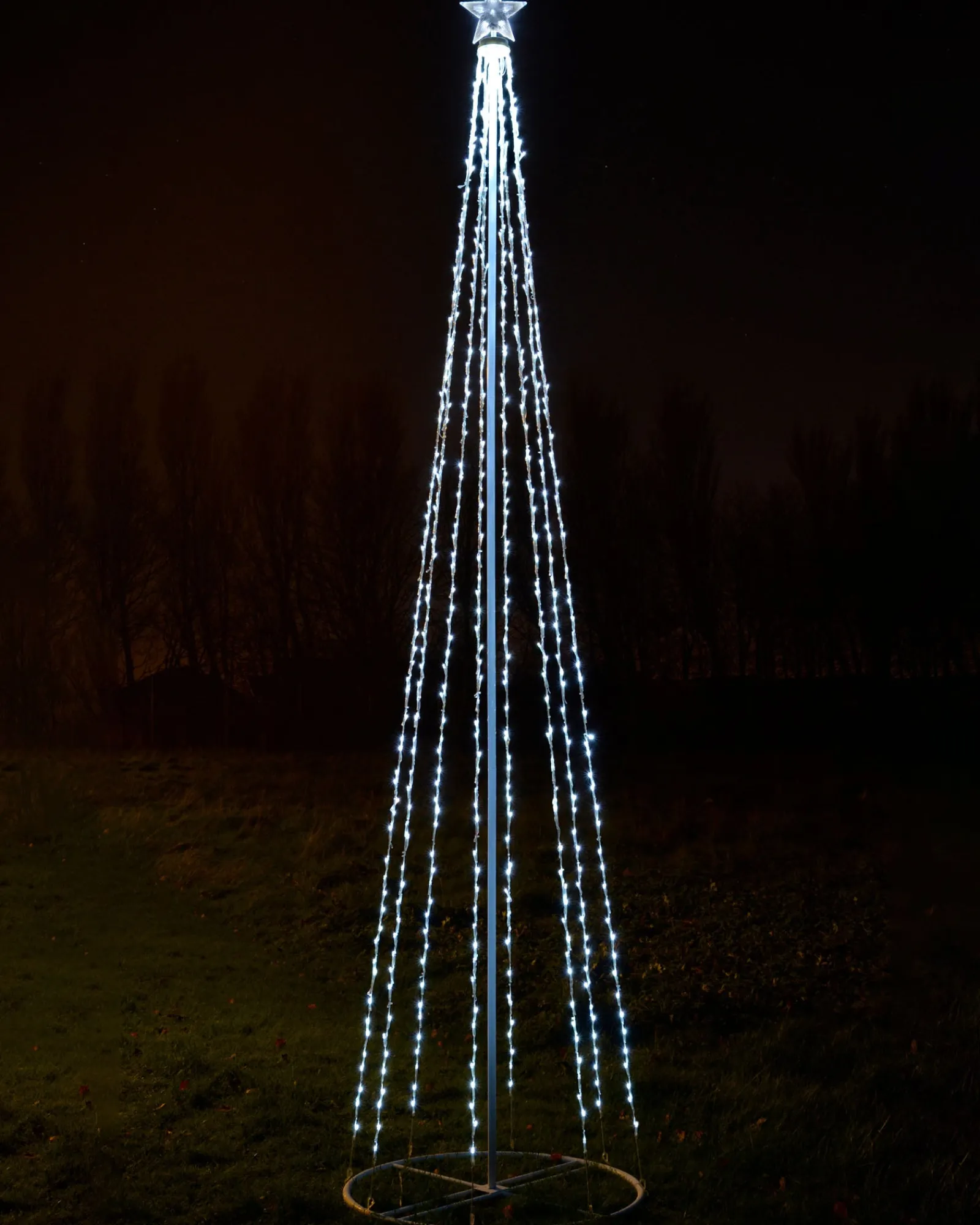 This bright white pop up Christmas tree is a simple quick way to decorate your home this Christmas. The tree is easy to set up and take down, making it the perfect choice for busy families.It has a star on its top and has strings of white LED lights falling down its sides. This Pop up tree features bright white flashing LEDs that alternate the flashing pattern, creating a truly mesmerising sight. If you are using this outside, please ensure the plug is mounted indoors or in a waterproof socket.